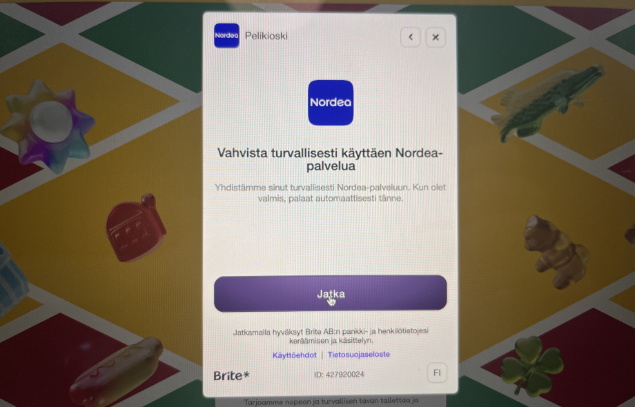 Pelikioskin rahansiirrot hoidetaan Brite-palvelun kautta suoraan verkkopankista, mikä tarkoittaa että Pelikioski on kasino ilman rekisteröitymistä.