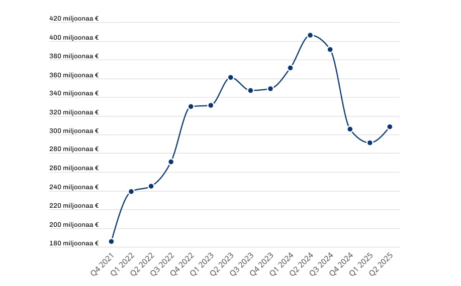 Suurin lasku johtuu lokakuussa 2024 käyttöönotetusta nettotalletusrajasta. Kuukausittaiseksi rajaksi asetettiin 700 euroa aikuisille ja 300 euroa 18–24-vuotiaille pelaajille.