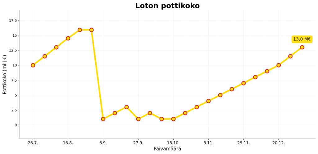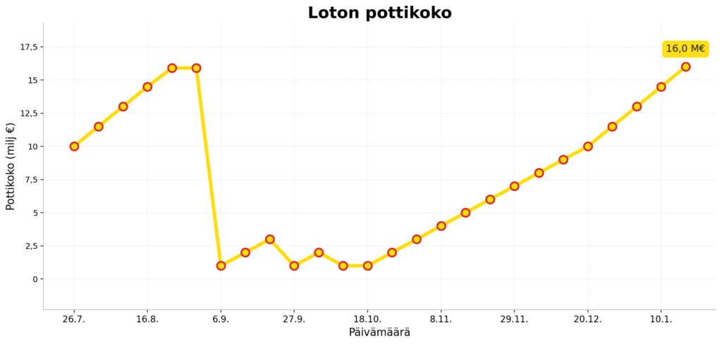 Lotto-potti alkaa olemaan lähellä ennätyslukemia (15 900 000 € mikä voitettiin 31.8.2025).